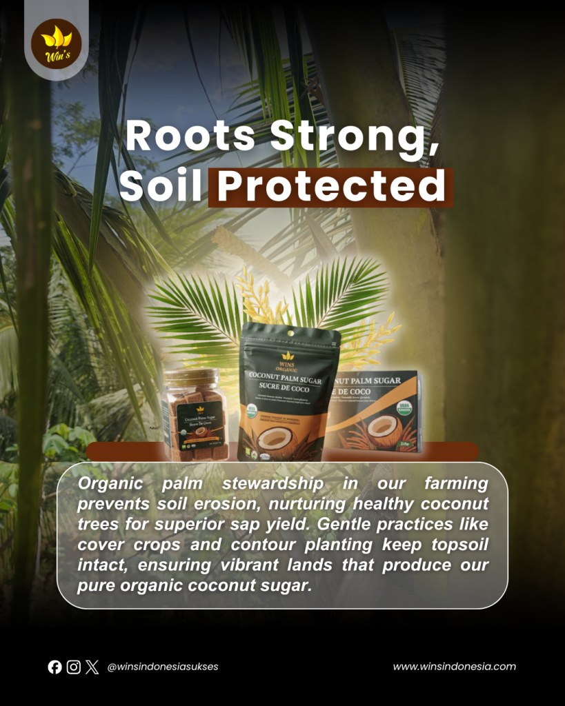 Organic palm stewardship in our farming prevents soil erosion, nurturing healthy coconut trees for superior sap yield. Gentle practices like cover crops and contour planting keep topsoil intact, ensuring vibrant lands that produce our pure organic coconut sugar.