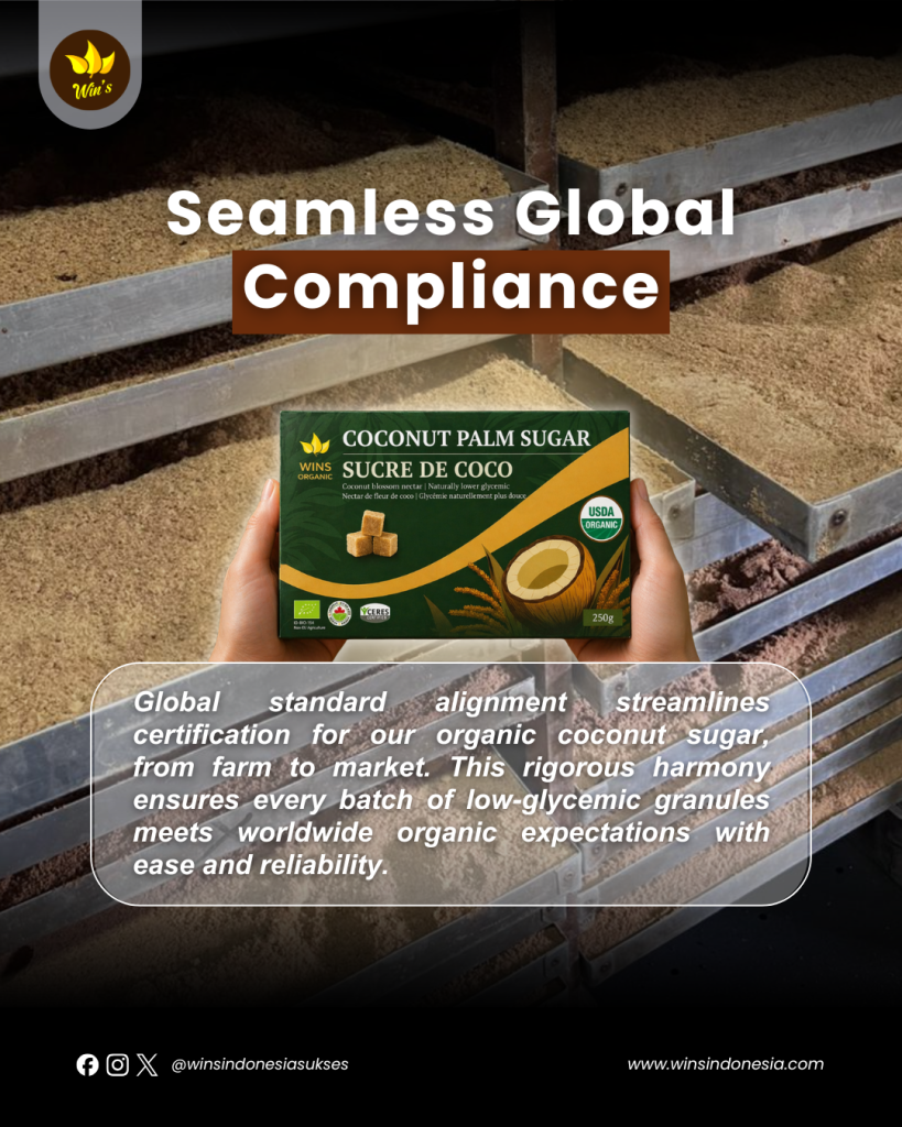 Global standard alignment streamlines certification for our organic coconut sugar, from farm to market. This rigorous harmony ensures every batch of low-glycemic granules meets worldwide organic expectations with ease and reliability.