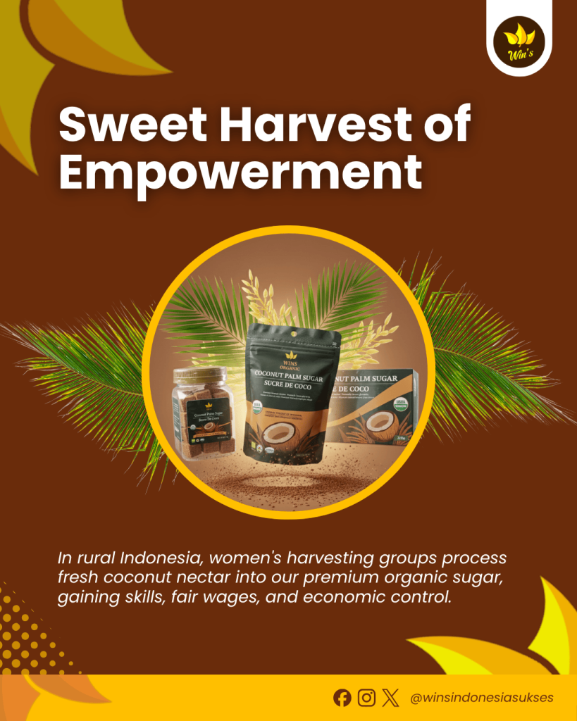 Our coconut sugar provides training and market access, helping these women invest in education and health. Every spoonful empowers independence in Indonesia’s countryside.