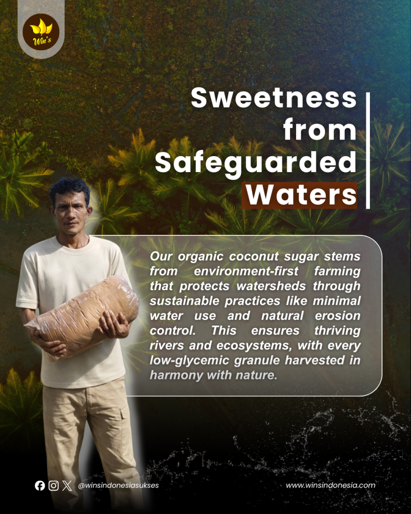 Our organic coconut sugar stems from environment-first farming that protects watersheds through sustainable practices like minimal water use and natural erosion control. This ensures thriving rivers and ecosystems, with every low-glycemic granule harvested in harmony with nature.